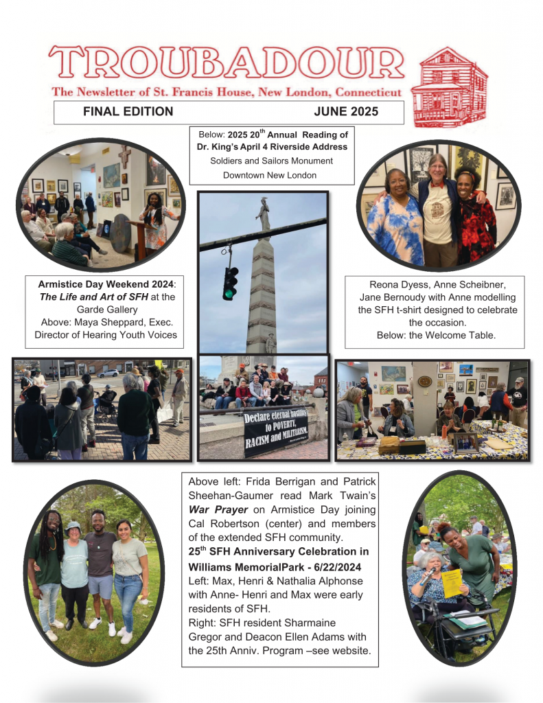Since 1999 members of the St. Francis House community were involved in efforts responding to crises and opportunities with action. This dynamic in some instances led to the creation and/or critical support for new initiatives serving New London and the surrounding area involving homelessness, urban education, peace witness and anti-racism work, community gardening and food policy, youth empowerment and exploring new ways to understand and change our local economy.